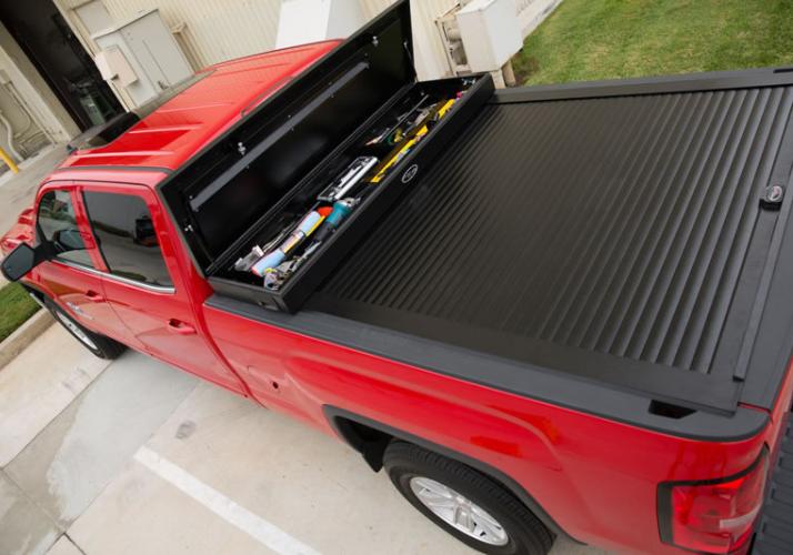 The Truck Covers USA American Work Cover is your solution for work and play. It offers the stylish design and superior construction of a toolbox and roll cover in one. The toolbox was designed with work trucks in mind. It offers a lower section that is 10 inches wide and 9.5 inches deep. While the upper section is larger measuring at 20 inches wide and 5.5 inches deep. This toolbox and cover combo comes ready to use with two black powder coated steel trays. (Stainless Steel trays available at additional cost). The cover has a sleek low-profile design that is available for virtually all trucks on the market today. Constructed from double walled light weight aluminum the Truck Covers USA American Work Cover can support up to 500lbs of evenly distributed weight. The Work Cover is a retractable truck bed cover that operates smoothly and effortlessly thanks to its tension-driven design. It can accommodate cargo of any size and automatically locks into place every 12 inches, providing just the right amount of protection and security.